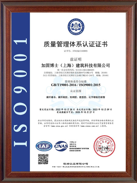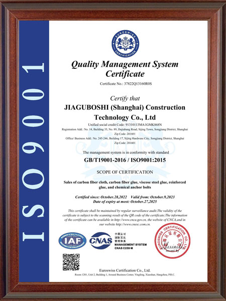 在生產中嚴格管理,積極引進先進生產工藝,且公司在管理上獲得了ISO9001認證,產品數據達到《GB 50728-2011》及混凝土結構用膠規范《GB/T37127-2018》,并取得了國檢中心頒發的五十年質保的安全性鑒定報告,達到所有規范的相關指標。
